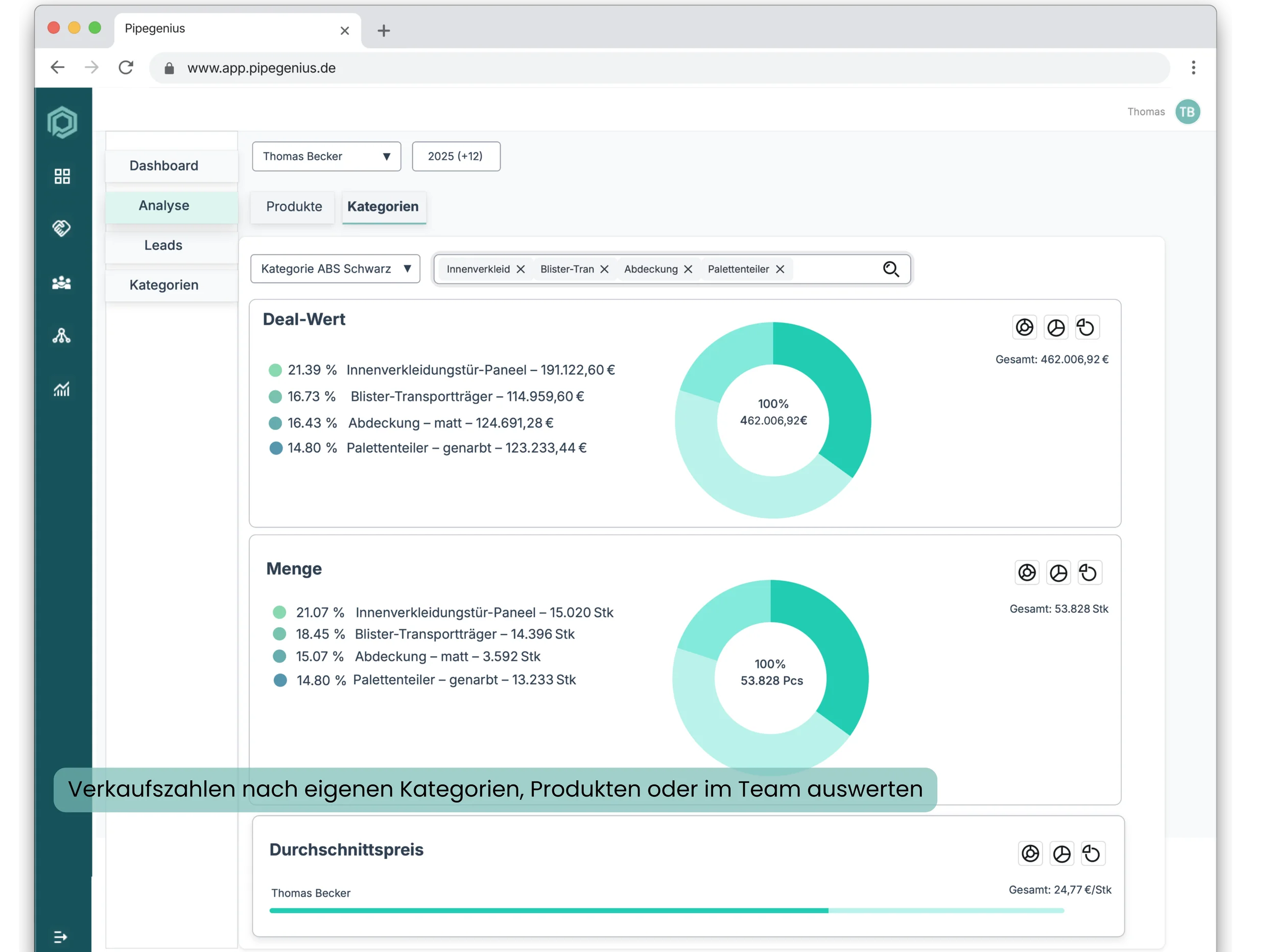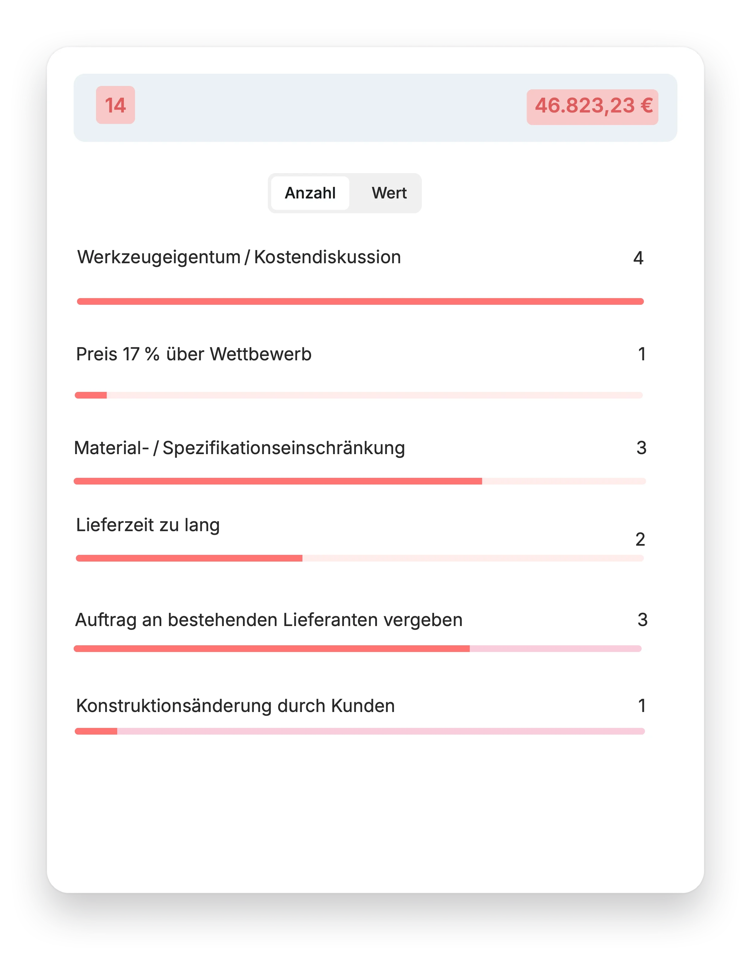 Bei jedem verlorenen Angebot zeigt PipeGenius den Grund. Muster werden sichtbar – pro Kunde oder im gesamten Vertrieb.