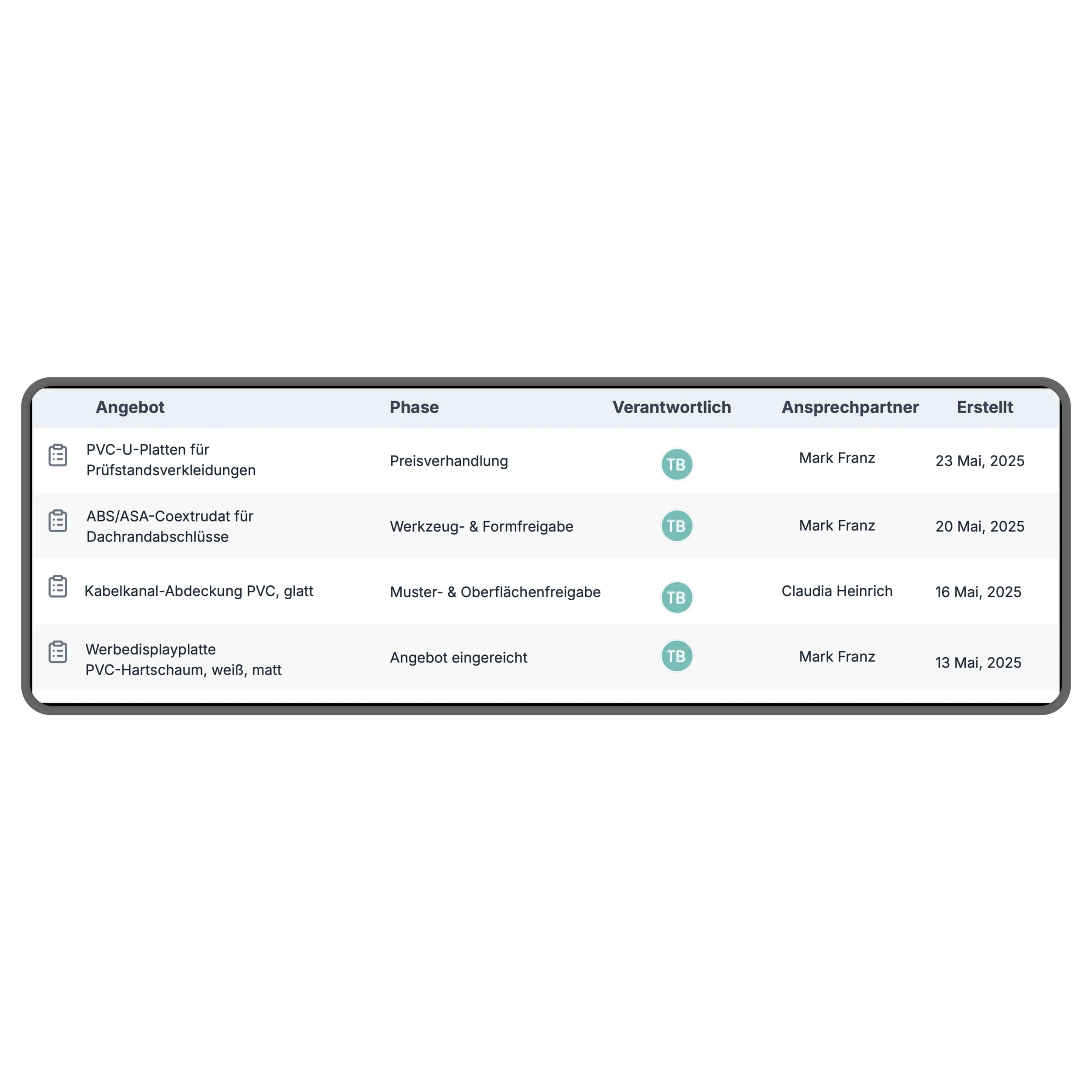 Alle Angebote, Aufträge, Freigaben, Zeichnungen und das gesamte Kundenverhalten sind an einem Ort.