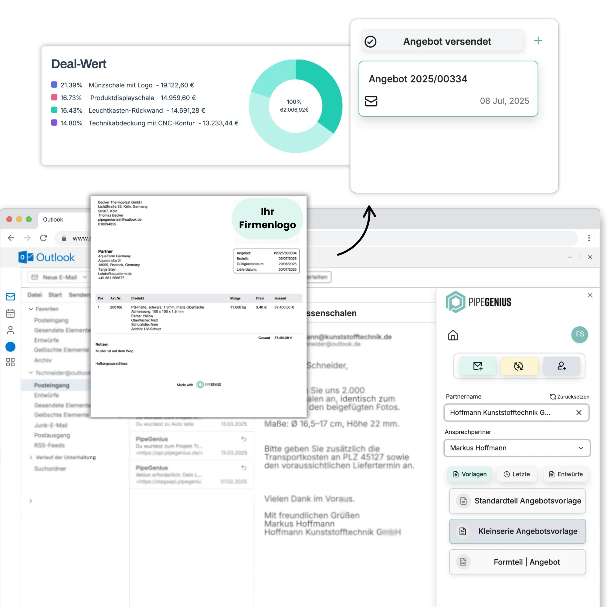PipeGenius sitzt genau da, wo technische Vertriebsteams ohnehin arbeiten. Einfach, vertraut, sofort nutzbar.